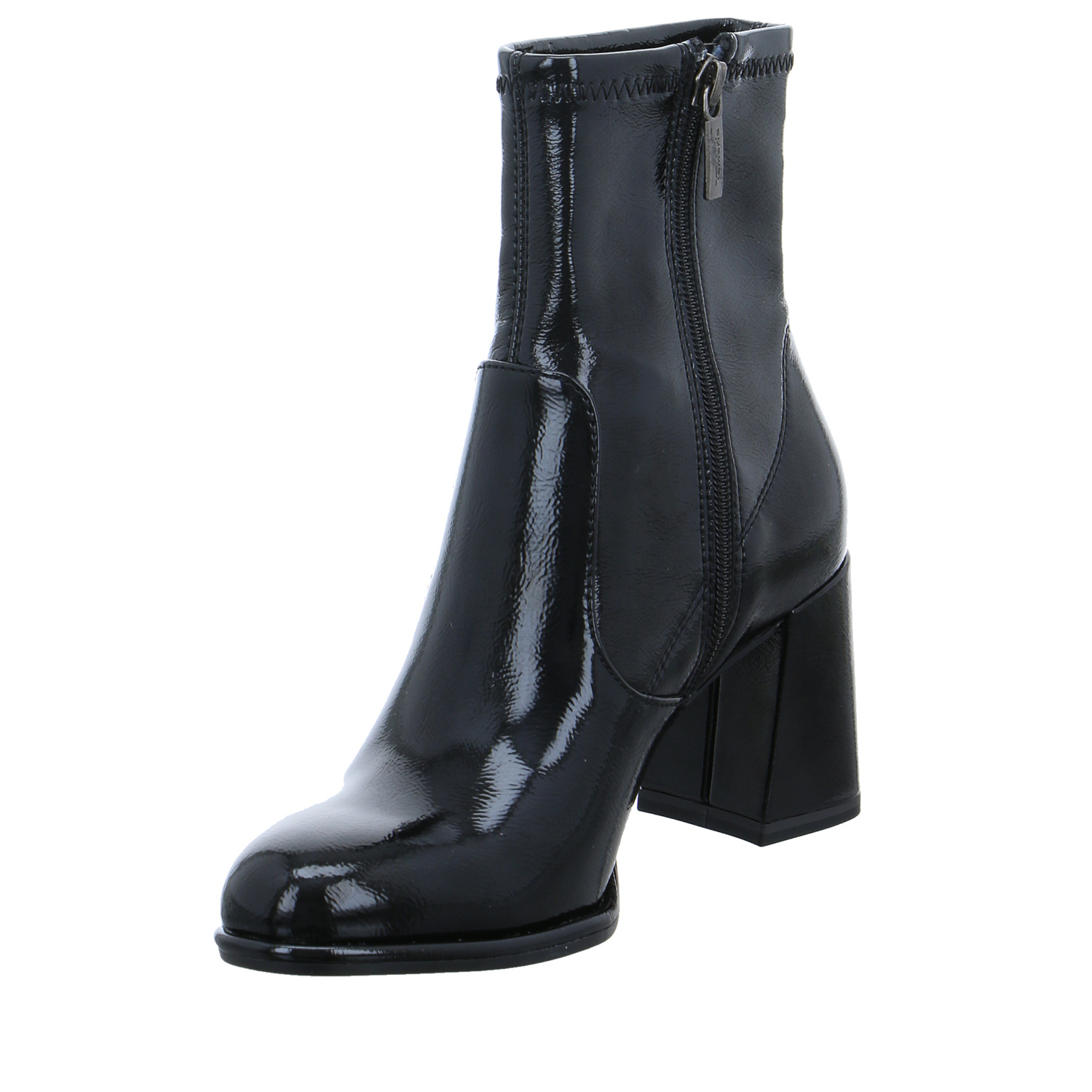 Diese stilecht gestalteten Stiefeletten aus dem Hause Tamaris vervollständigen Ihr Outfit. Der komfortable Blockabsatz sorgt für einen ansprechenden Auftritt. Der Schuh ist mit einem Reissverschluss ausgestattet. Das Obermaterial besteht aus Lackimitat.